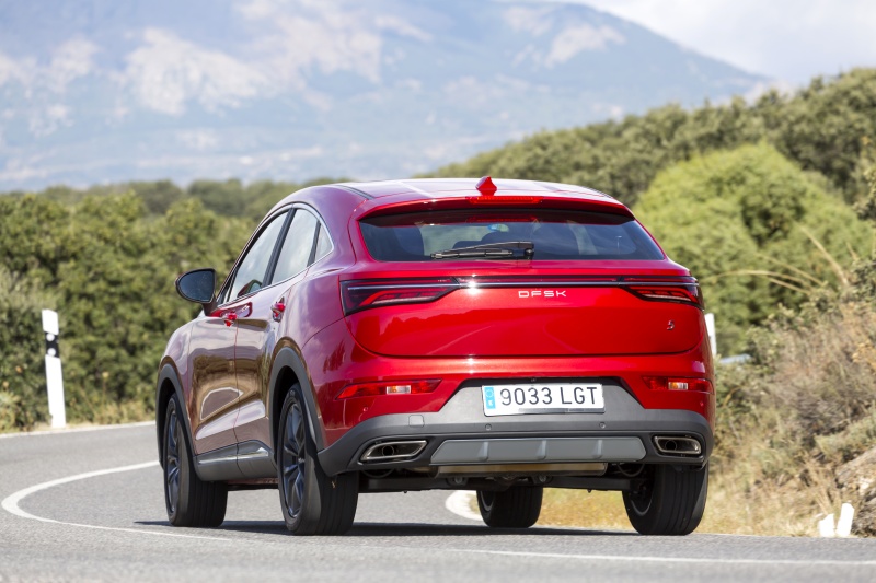 En marcha sus cortos voladizos y generosa batalla, con 2,79 m de longitud, aseguran tanto un gran aplomo en vías rápidas como una gran agilidad en los trazados más revirados. Todo ello sin menoscabo de un gran confort gracias a su suspensión independiente en ambos trenes, así como a la baja rumorosidad que se registra en su habitáculo. No en vano, los ingenieros de DFSK han acometido un gran esfuerzo para reducir lo máximo posible el nivel de NVH (ruidos y vibraciones); que se encuentra en los valores más bajos del segmento premium.