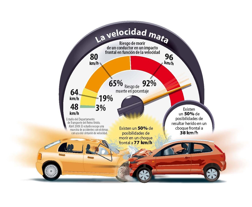 Un aumento del 5% en la velocidad provoca aproximadamente un incremento del 10% en los accidentes que causan traumatismos y del 20% en los accidentes con víctimas mortales.