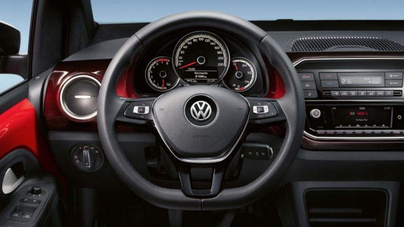 Incluso el diseño exterior del «up! beats» encuentra el tono adecuado. Los asientos de tela en diseño «beats», el dash pad «deep dimension», especialmente diseñado para esta versión, y el volante multifunción con un panel decorativo de color blanco le confieren al interior un toque muy personal y exclusivo. Los atractivos listones de acceso de las puertas, los cinturones de seguridad con colores a juego con la versión de equipamiento correspondiente y la iluminación ambiental de color blanco demuestran el gran amor que los diseñadores han puesto en cada detalle. El exterior se caracteriza por láminas decorativas de diseño «beats», retrovisores exteriores de colores, llantas de aleación ligera de 15 pulgadas de diseño «radial» con cubierta central de colores y el emblema «beats» en el pilar B.