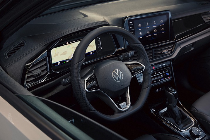 Con una superficie con revestimiento de espuma y costuras distintivas, el nuevo salpicadero aporta un diseño moderno y de alta calidad al interior del nuevo T-Roc. Ahora la pantalla de Infotainment está diseñada como una tableta y colocada en el salpicadero en línea con el cuadro de instrumentos detrás del volante. Dependiendo del equipamiento, la pantalla de infoentretenimiento es de 6,5, 8,0 ó 9,2 pulgadas. El SUV compacto incluye de serie un cuadro de instrumentos digital que está disponible opcionalmente con un tamaño de hasta 10,25 pulgadas, con el nombre de Digital Cockpit Pro. El volante multifunción, que también forma parte del equipamiento de serie, tiene un nuevo diseño que contribuye al control intuitivo del vehículo.