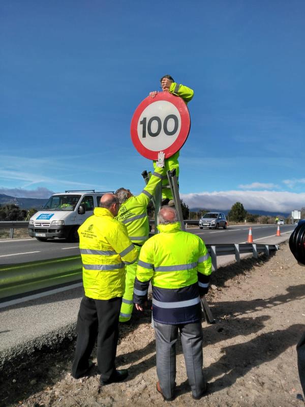 El director general de Tráfico, Pere Navarro, ha señalado durante el acto en el que se ha procedido a cambiar la última señal de tráfico con límite a 100 km/h, y en el que también ha participado el director general de Carreteras, Javier Herrero, que “esta reducción de la velocidad debe ir acompañada de una mayor vigilancia y control por parte de las policías encargadas de la vigilancia del tráfico y de mejoras y actuaciones en el diseño de las infraestructuras por parte de los titulares de la vía”.