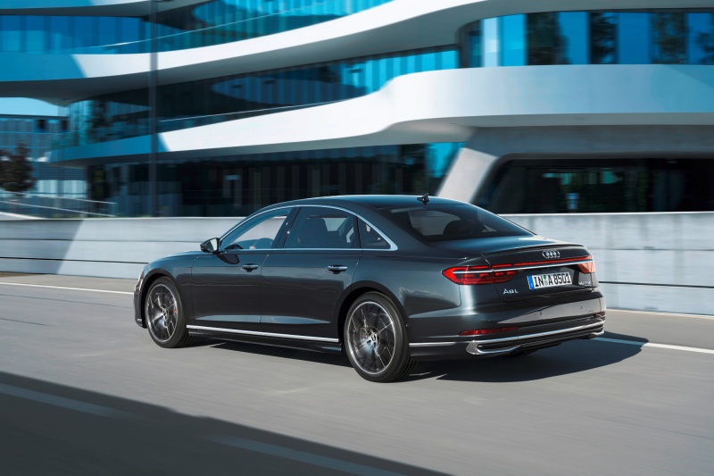El nuevo Audi A8 está disponible en 3 motorizaciones: V6 3.0 TDI disponible para el nuevo Audi A8 y Audi A8 L, el híbrido enchufable, que combina el 3.0 TFSI con un motor eléctrico, disponible también para ambas carrocerías y el V8 4.0 TFSI que impulsa al S8. El V6 3.0 50 TDI quattro desarrolla 286 CV (210 kW) de potencia y 600 Nm de par, que ya están presentes a 1.750 rpm y se mantienen constantes hasta los 3.250 rpm. El motor diésel permite tanto al A8 como al A8 L acelerar de 0 a 100 km/h en 5,9 segundos, y alcanzar una velocidad máxima limitada electrónicamente de 250 km/h, una cifra que se mantiene para toda la gama.