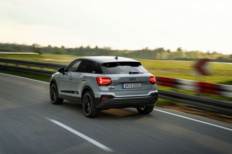 La parte trasera del Audi Q2 cuenta con motivos poligonales, que ya caracterizaban al frontal y a la línea de los hombros. La parte delantera también recibe modificaciones, con las superficies situadas bajo los faros emergiendo de una forma más llamativa. Las grandes entradas de aire integradas, que también son pentagonales, aportan una mayor expresividad, especialmente en la línea de equipamiento opcional S line.