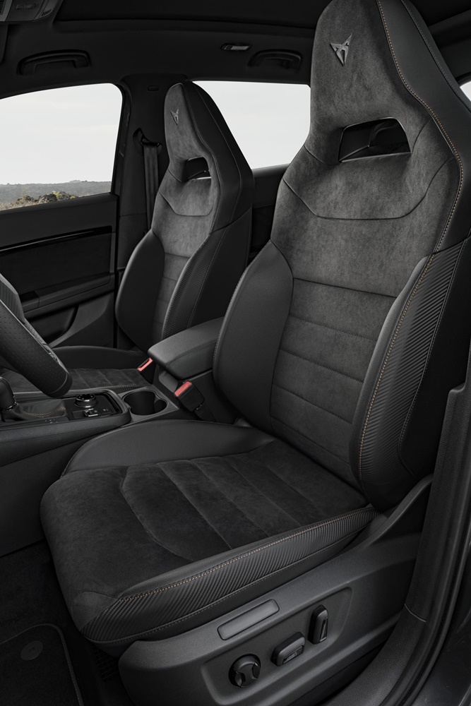 Esa sensación de calidad se puede reforzar aún más con elementos opcionales como el sistema de frenos con discos sobredimensionados, ventilados y perforados, con pinzas Brembo en color negro, o el acabado en fibra de carbono opcional para los retrovisores y otros elementos de la carrocería. Los exclusivos asientos tipo bucket del CUPRA se ofrecerán a finales de año.