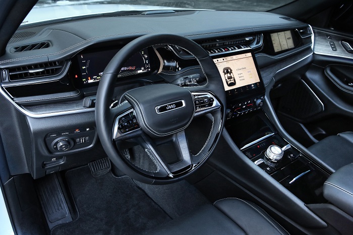 El habitáculo del Nuevo Jeep Grand Cherokee es confortable y acogedor, con la calidez de la tapicería de piel Palermo y diversos toques en auténtica madera de nogal distribuidos por el interior. El ambiente sonoro se ha cuidado especialmente, como demuestra el sistema audio McIntosh, formado por 19 altavoces que crean una sensación envolvente y con un gran nivel de detalle. Sus asientos calefactados, ajustables en 16 posiciones memorizables y con función masaje aseguran un viaje con el máximo nivel de comodidad, sin importar los kilómetros o lo escarpado del terreno.
