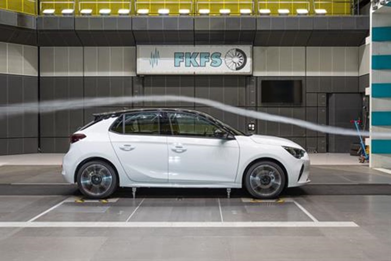 Al igual que en todos los nuevos desarrollos de Opel, la aerodinámica del nuevo Corsa se ha optimizado en el túnel de viento de la Universidad de Stuttgart del Instituto de Investigación de Ingeniería de Automoción y Motores de Vehículos.
