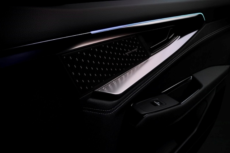 La parte superior del salpicadero está cubierta con un revestimiento mate y acolchado que resulta muy agradable al tacto. Una franja luminosa se prolonga hasta los paneles de las puertas, lo que contribuye a ampliar la percepción visual. Materiales sofisticados como la madera auténtica tratada con el método japonés «Maki-e» realzan el diseño del interior. Esta técnica de trabajo de la madera resalta las vetas naturales utilizando un paño para aplicar varias capas de pigmentos metálicos a la madera. Este tratamiento conserva la veta natural y el relieve de la madera al tacto. Por último, una elegante banda de cromo satinado envuelve cuidadosamente la rejilla de aireación horizontal.
