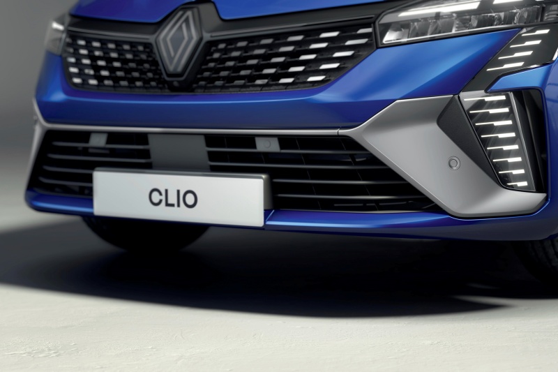 Nuevo Clio integra una nueva firma lumínica delantera. Es el primer vehículo de producción de Renault que incorpora esta nueva identidad visual, inspirada en el nuevo logo, con luces diurnas verticales LED en forma de medio rombo. Acentúan el carácter vibrante del frontal al tiempo que refuerzan la coherencia entre el diseño de la gama y la imagen de marca.