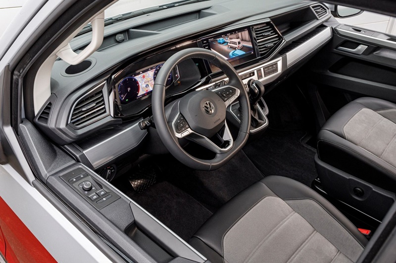 El Bulli 6.1 siempre está conectado con el mundo exterior. El tablero de instrumentos de nuevo diseño del Bulli 6.1 integra, por primera vez, el "Digital Cockpit". Sobre el mismo eje visual se incorporan los sistemas de última generación del "sistema modular de infotainment" (MIB2 y MIB3). El "Digital Cockpit" y el sistema de infotainment correspondiente forman una nueva arquitectura digital. Todos los sistemas de infotainment están equipados con la unidad de control del módulo de llamada de emergencia y de comunicación (OCU). Aquí se ha integrado una tarjeta eSIM. La OCU es la interfaz para un nuevo abanico de funciones y servicios basados en Internet agrupados bajo "We Connect" y "We Connect Plus". En general, la conexión en línea posibilita incorporar tecnologías completamente nuevas en el Bulli 6.1 como, por ejemplo, el control por voz con procesamiento del lenguaje natural.