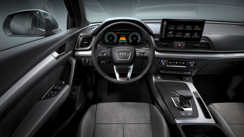 Al acceder al interior de los nuevos Audi Q5 y Audi Q5 Sportback el conductor disfruta de lo último en digitalización y conectividad de Audi. El Audi Virtual Cockpit de 12,3’’ con navegador de serie se combina con una gran pantalla táctil de 10,1 pulgadas con un procesador aún más potente que integra el control por voz y permite conectar cualquier smartphone. Además, de serie, la nueva familia Q5 trae consigo el Audi phone box para cargar el terminal móvil sin cables.