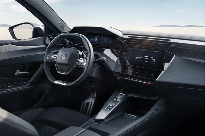 EMOCIÓN. Para el conductor y los pasajeros, los nuevos PEUGEOT e-308 y e-308 SW presentan la última generación del PEUGEOT i-Cockpit, reconocible por: Su compacto volante calefactado está destinado a ofrecer placer de conducir y una gran agilidad. Su combinado digital 3D, personalizable y configurable. Su pantalla táctil central de 10 pulgadas.