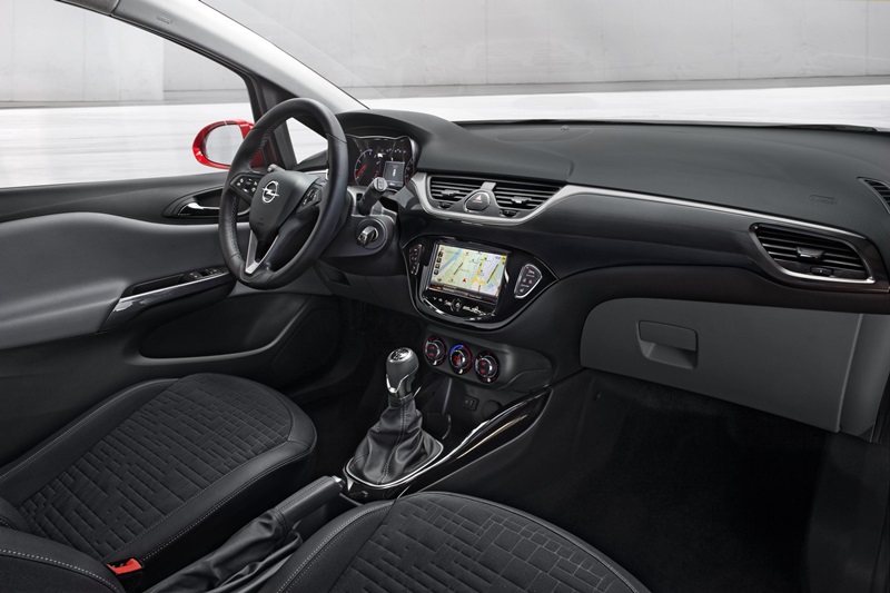 Con un diseño limpio, el habitáculo del nuevo Corsa está organizado en torno al llamativo centro de control del conductor cuyo panel de instrumentos está diseñado alrededor de líneas horizontales que visualmente mejoran la sensación de espacio interior. La pantalla táctil en color de 7 pulgadas del sistema IntelliLink está idealmente colocada en la consola central, cerca de la palanca de cambios. Esto permite al conductor mover su mano alternativamente y de forma natural entre la palanca de cambios y la pantalla. El nuevo y avanzado sistema de infoentretenimiento del Corsa ofrece las mejores oportunidades de conectividad, es compatible con dispositivos de Andriod y Apple que se pueden utilizar con el control de voz. También se puede utilizar el Bluetooth y Siri Eyes Free. Están disponibles varias aplicaciones como BrinGo para navegación, así como Sticher o Tuneln para radio digital y podcasts, y hay una práctica FlexDock para dejar y cargar los smartphones.
