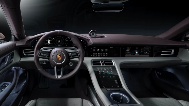 El habitáculo del Taycan dio paso a una nueva era en 2019, con su estructura limpia y una arquitectura novedosa. El cuadro de instrumentos curvado e independiente es el punto más alto del salpicadero. Además, hay otra pantalla central de 10,9 pulgadas para el sistema de infoentretenimiento y una tercera opcional para el acompañante.