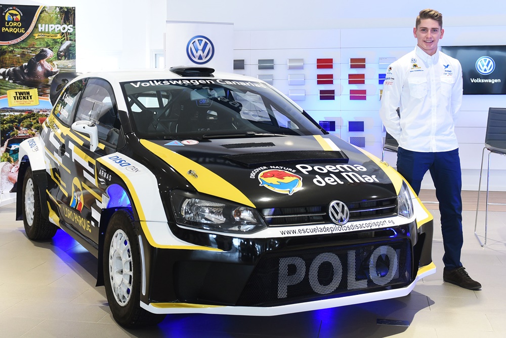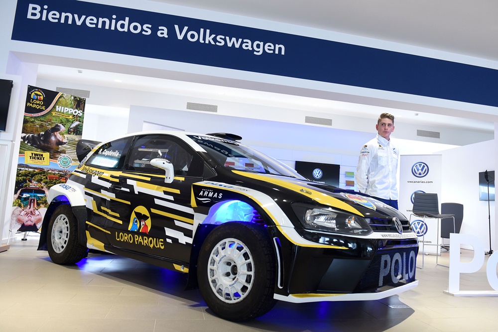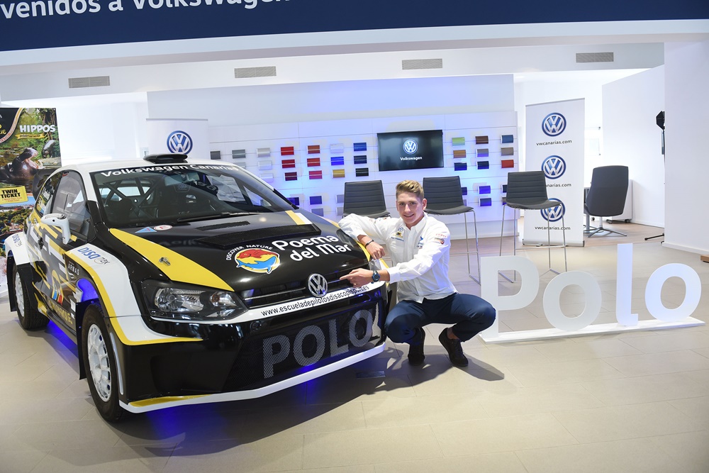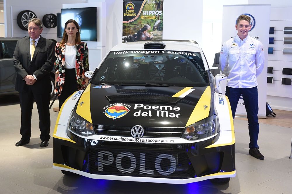 En el acto, el joven piloto canario estuvo acompañado por Silvia Rosales, gerente de comunicación de Volkswagen, y Fernando Capdevila, director deportivo y propietario de Copi Sport.