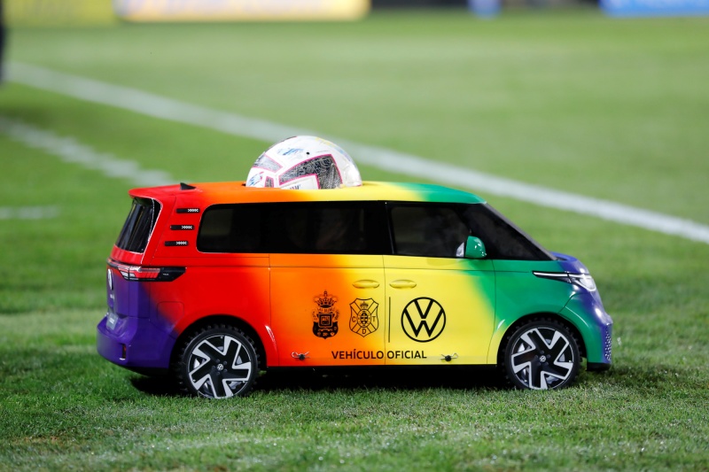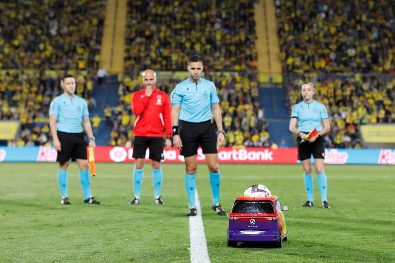 La réplica teledirigida del ID. Buzz fue la encargada de llevar el balón del derbi hasta el centro del campo, una acción pionera dentro de La Liga Española que Volkswagen, patrocinador de ambos equipos, quiso llevar a cabo en un día especial para las islas, con la disputa del derbi. Además para estar a la altura de la ocasión el ID. Buzz se personalizó con los escudos de ambos equipos.
