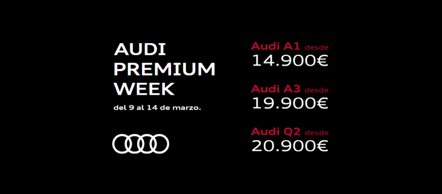 Un año más, con Audi Premium Week arranca la semana más esperada por los clientes canarios para hacerse con su Audi soñado con unos precios imbatibles, sólo hasta el 14 de marzo. Más información en las Redes Sociales de Audi Canarias: Facebook, Twitter e Instagram, y la página web www.audicanarias.com.