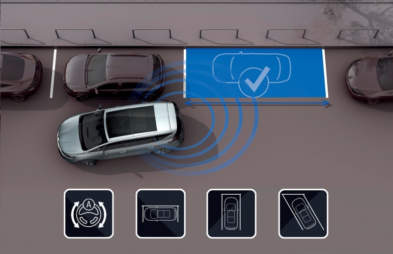 Con el Easy Park Assist, que apareció en el Espace 5 en 2015, "se dio un paso adelante", señala Pape. A petición del conductor, el vehículo busca una plaza de aparcamiento adaptada a su tamaño, y luego gestiona su propia trayectoria "tomando el control" del volante. El conductor sigue teniendo que gestionar la aceleración, el frenado, el cambio de la marcha atrás a la marcha adelante y la aplicación del freno de mano.