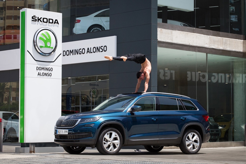 La marca checa ŠKODA y el Cirque du Soleil han firmado un acuerdo de colaboración hasta 2021. Con este convenio ŠKODA se convierte en patrocinador oficial y suma a su cartera de patrocinios la compañía de espectáculos más famosa del mundo. Y para celebrarlo por todo lo alto, el acróbata Saulo Sarmiento, siempre desafiando las leyes de la gravedad, no ha dudado en subirse a lomos del impresionante Kodiaq, vehículo que ŠKODA Canarias puso a disposición del artista para que sea su compañero de viaje durante su pasada estancia en Gran Canaria.