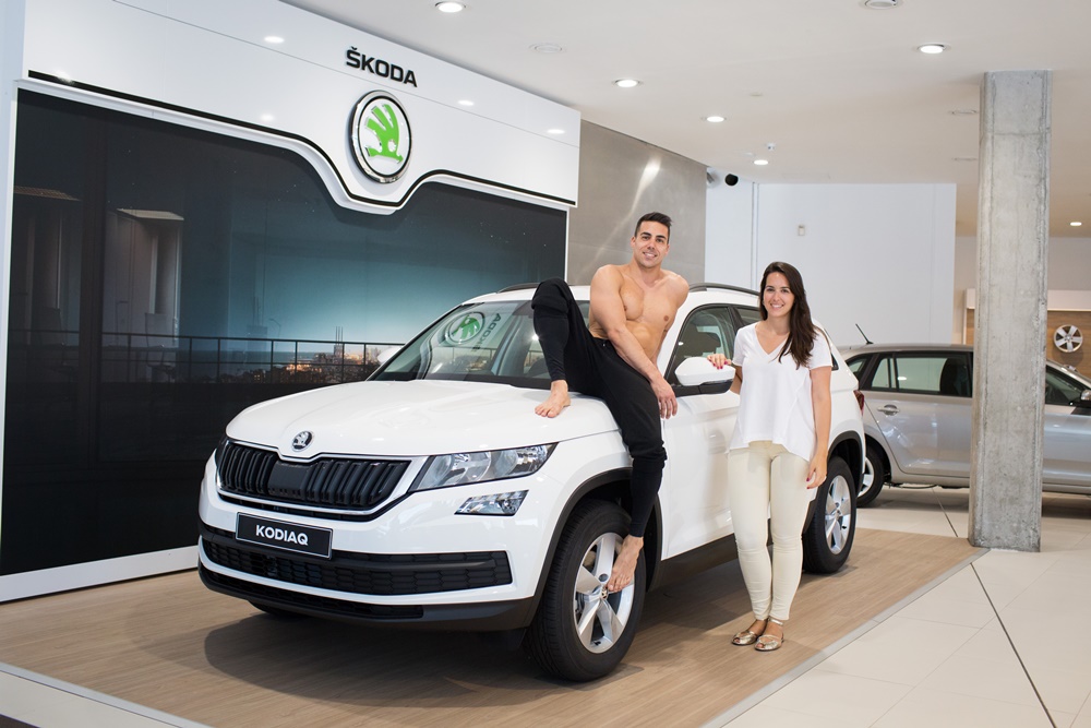 El acróbata grancanario, Saulo Sarmiento, recibió las llaves de su ŠKODA Kodiaq de la mano de Ana Vidal-Rivas, gerente de comunicación de ŠKODA Canarias en su visita al concesionario de Domingo Alonso en Miller, donde sorprendió a todos con sus acrobacias. ŠKODA Canarias pretende estrechar lazos con los artistas canarios y dar reconocimiento al gran esfuerzo que realizan persiguiendo sus sueños.
