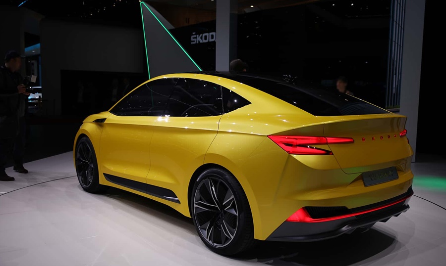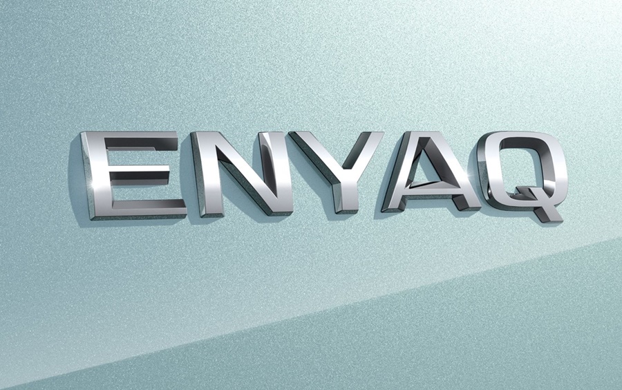 La primera foto que se facilita de este modelo muestra el diseño del ŠKODA ENYAQ, mostrando las letras "ENYAQ" en la parte trasera del SUV, segundo vehículo totalmente eléctrico de la marca, después del ŠKODA CITIGOe iV.