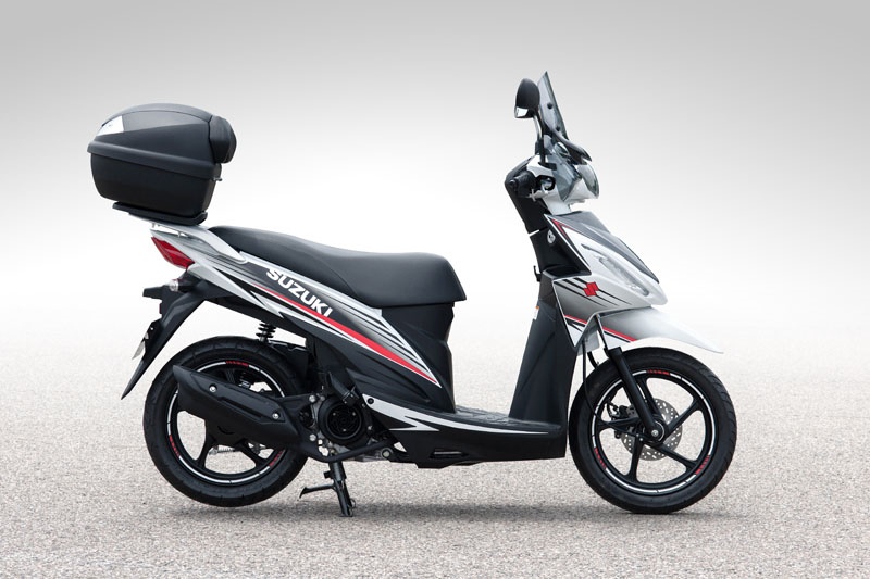 Dentro de la gama de scooter de Suzuki, la Address sorprende por su agilidad y ofrecer el consumo más bajo de su categoría (1,96 litros a los 100 kilómetros, con una autonomía de 255 kilómetros). Sin duda, un scooter de moda. Gracias a su estilizada silueta y a su integrada óptica delantera, la Suzuki Address ofrece el máximo control en los trayectos en ciudad gracias a su rueda de 14 pulgadas y a sus llantas de fundición de aluminio que reducen el peso total de la moto. Además, declara una altura de asiento de tan sólo 750 mm.
