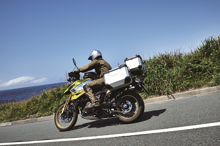 Su hermana de gama, la V-Strom 1050DE, introduce muchos cambios para mejorar su comportamiento fuera del asfalto, que agradecerán especialmente los motoristas con un espíritu más off-road. Entre ellos se encuentran la adopción de un neumático delantero radial de 21 pulgadas (en medidas 90/90-21M/C 54H), una mayor distancia entre ejes para mejorar la capacidad de control sobre la grava y las pistas de tierra, un recorrido de suspensión más largo para absorber mejor los baches en superficies rugosas (que pasa de 160 a 170 mm delante, y de 160 a 169 mm, detrás) y una mayor distancia libre al suelo (de 165 a 190 mm).