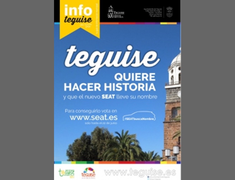 Desde el Ayuntamiento de Teguise, por iniciativa de su alcalde, Oswaldo Betancort, se inició una campaña para promocionar el nombre del municipio lanzaroteño. Hoy jueves 22 de junio, es el último día que se pueden realizar las propuestas, para apoyar la causa, se pude votar en la web www.seat.es. En esta misma web de Lancelot Digital, puedes acceder directamente a través del banner SEAT TEGUISE.