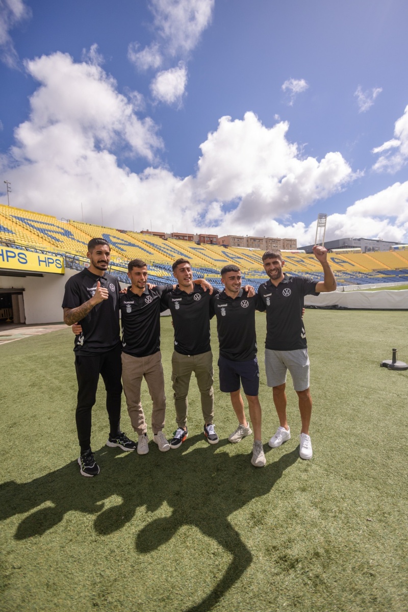 El Estadio Gran Canaria fue el escenario en el que se dieron cita los miembros del conjunto amarillo, cuerpo técnico y directivos de la entidad, para recibir la nueva flota de vehículos de la mano de Volkswagen. La entrega la realizó Magüi Melián, CEO de Domingo Alonso Importer y Patricio Viñayo, director general de la UD Las Palmas.