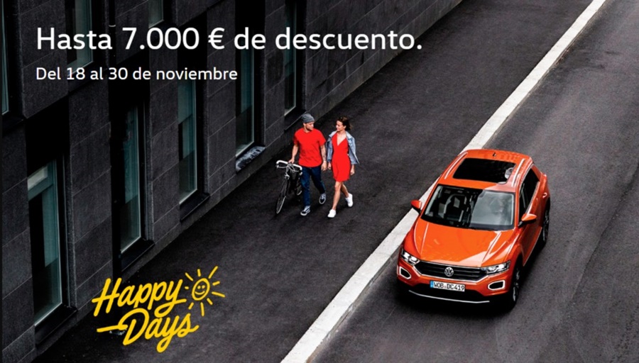 La felicidad se cuela en los concesionarios de Volkswagen Canarias: ¡ya están aquí los Happy Days! La marca alemana da el pistoletazo de salida a una de las campañas más esperadas por los amantes de la marca alemana con descuentos de hasta 7.000€. Hasta el 30 de noviembre los clientes canarios podrán estar a un paso más cerca de la felicidad.