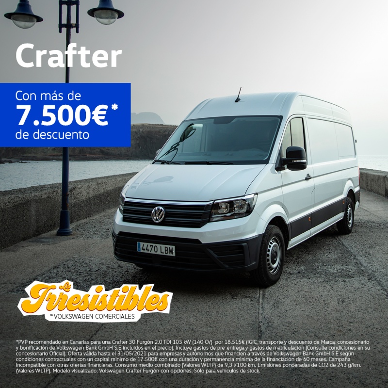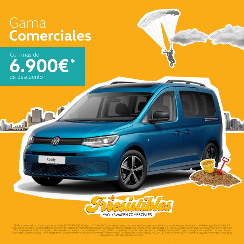 Hasta el 31 de mayo Volkswagen Comerciales Canarias aplica descuentos irresistibles en toda su gama de modelos en stock. Asimismo, la marca azul ofrece sorprendentes descuentos en sus modelos más deseados, como la práctica y novedosa Caddy, la robusta Transporter, la versátil Multivan o la inigualable Crafter.