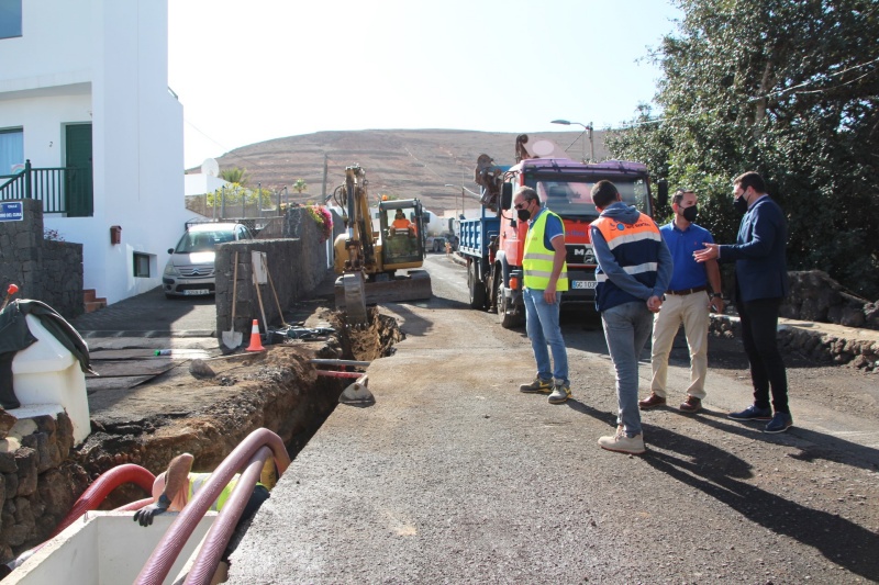El alcalde de Yaiza, Óscar Noda, y el concejal de Obras Públicas, Jonatan Lemes, visitaron los trabajos de canalización de redes de servicio público que el Ayuntamiento adelanta esta semana en la calle El Correo del pueblo de Yaiza conforme al proyecto de asfaltado y obras complementarias que la Administración ejecuta en la localidad sureña por valor de 1,2 millones de euros, tratándose de una nueva y ambiciosa fase del plan de mejoras viarias del municipio que paralelamente desarrolla obras en Playa Blanca con un 1 millón de euros más de inversión propia.