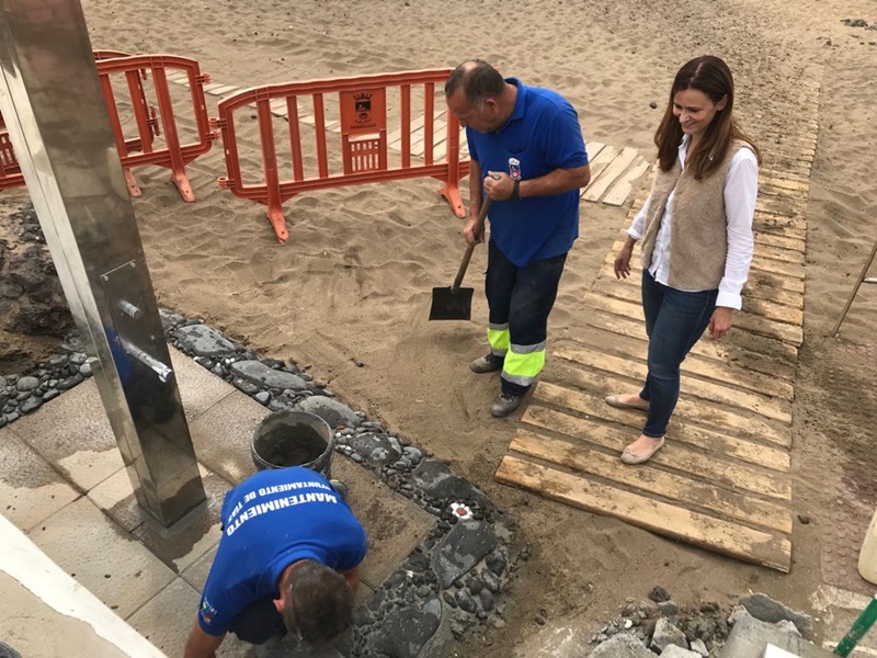Todas las playas de Tías actualmente disponían de servicios de lavapiés que se está mejorando con la instalación de estas nuevas duchas demandadas por los usuarios de las playas y los agentes vinculados con el sector turístico.