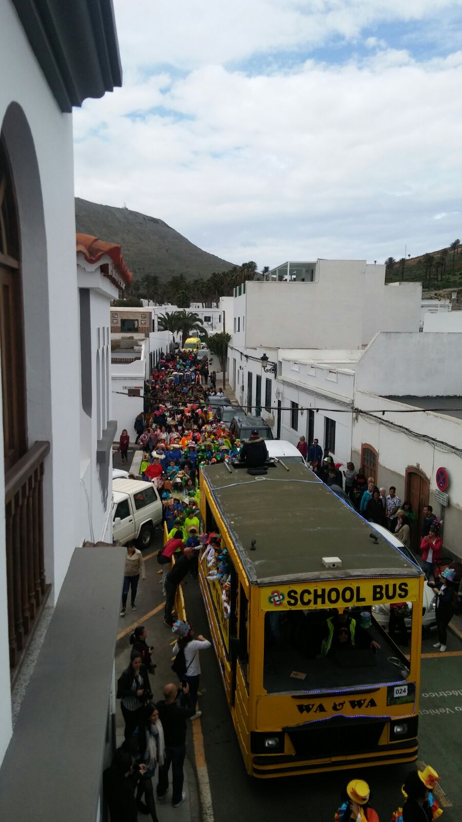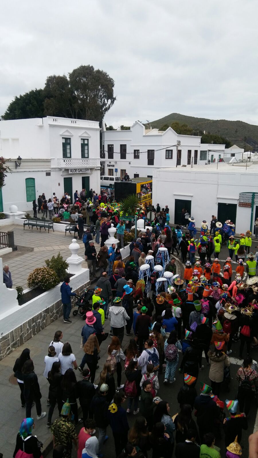La comitiva estuvo encabezada por niños del CEIP San Juan de Haría, así como del primer y segundo curso de la ESO del IES Haría, que se dirigieron a la Plaza, donde se llevaron a cabo distintas actuaciones.