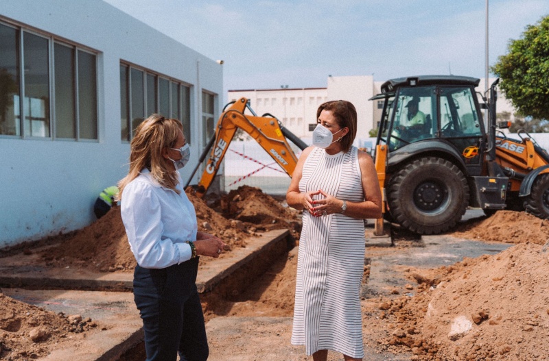 La alcaldesa de la Ciudad, Astrid Pérez, y la concejal de Educación, Saro González, han realizado una visita a las instalaciones del comedor escolar del colegio de enseñanza infantil y primaria Capellanía del Yágabo, en Arrecife, donde ya han comenzado las obras de ampliación que permitirán, no solo el aumento de su capacidad, si no su modernización.