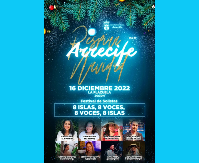 La Plazuela de Arrecife acogerá, este viernes 16 diciembre, el festival de solistas “8 islas, 8 voces, 8 voces, 8 islas”, un evento que se encuentra dentro del programa de Navidad que ha organizado el Consistorio capitalino.