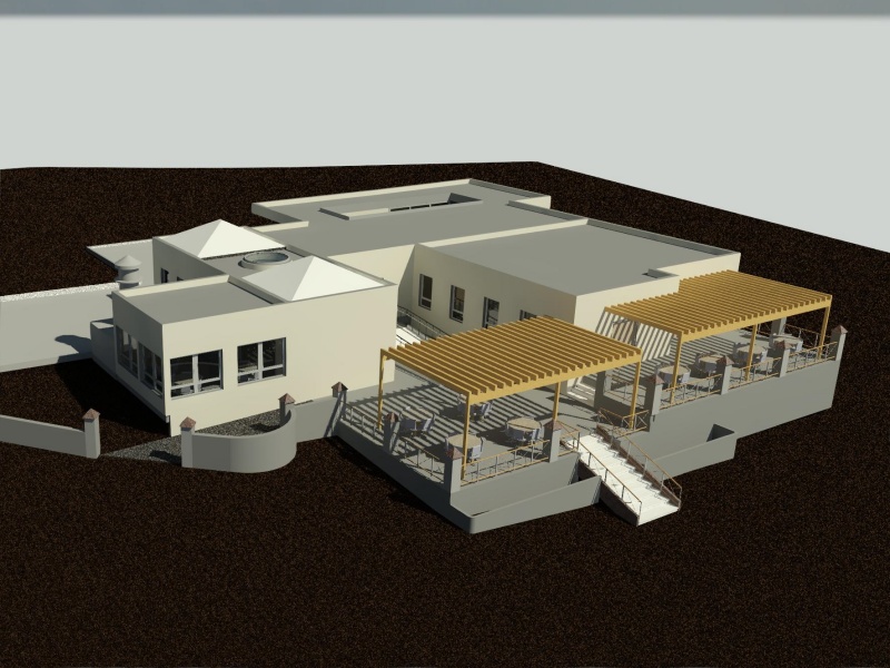 Se plantea un espacio integrado, completamente accesible, y donde las terrazas y exterior cobran protagonismo incluyendo un parque infantil en la parte trasera, pudiendo los mayores estar cerca de familias y niños/as mientras juegan o los mayores realizan mantenimiento en la maquinaria bio-saludables. Un patio central y acristalamiento aportará luminosidad, mayor integración del espacio y confort. El centro contará con dos salas polivalentes, salones comunes, sala de curas con camas geriátricas regulables, sala de personal, sala de administración, espacio exterior para la realización de ejercicio físico adaptado, con maquinaria bio-saludable. También contará con aseos adaptados, vestuarios y lavandería, con itinerarios accesibles desde el exterior e interior del recinto, y contemplará una reforma de la envolvente para adaptarla, modificación de instalaciones de abasto y saneamiento, instalación de nueva iluminación led, de ventilación y climatización. Al edificio se accederá por una rampa frontal a la derecha. Incluye vestíbulo de recepción, cocina, comedor con una terraza cubierta vinculada a la chimenea existente, parque infantil exterior y terrazas en sombra con vegetación. La vegetación toma protagonismo en este proyecto, buscando paz y tranquilidad, con un pequeño jardín y plantas en zonas comunes, así como una cubierta ecológica en toda la edificación aprovechando la estructura existente.