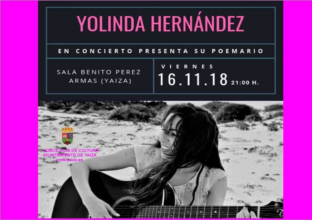 21:00h Concierto musical y presentación de poemario de la artista Yolinda Hernández. Entrada libre, Casa de la Cultura de Yaiza.