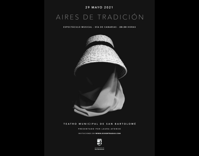 "Aires de Tradición" se convierte en el espectáculo protagonista para celebrar el Día de Canarias en el municipio de San Bartolomé, haciendo un repaso por la historia del folclore conejero, a través de un formato simple y moderno, sin dejar atrás el sentir de nuestras tradiciones. El Teatro abrirá sus puertas para acoger este evento el sábado 29 de mayo a las 20.30 horas. Aquellas personas interesadas tendrán que retirar sus invitaciones en www.ecoentradas.com.