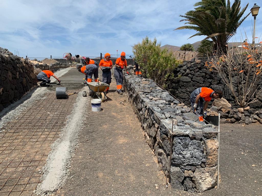 Los 15 alumnos, guiados por un equipo directivo y docente, han ejecutado obras como levantar varios muros de cerramiento en fábrica de bloque, ampliar accesos adoquinados, hormigonar espacios para juegos y muros de piedra volcánica. Durante los próximos meses continuarán con su aprendizaje en diferentes puntos del municipio de Tías.