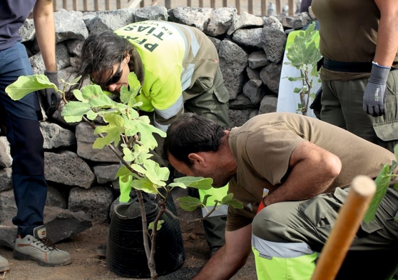 Esta propuesta se está llevando a cabo gracias a la implicación de todo el equipo del Programa de Formación en Alternancia con el Empleo (PFAE) Tías en Verde, cuyos alumnos trabajadores acondicionaron la zona previamente con limpieza y colocación de muros y sustrato en el suelo afectado.