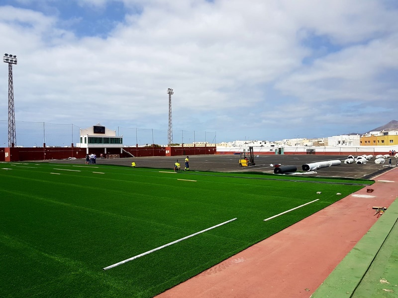 Una inversión de 177.000 euros, aportados por la primera Institución Insular, a través de los Planes de Cooperación Intermunicipal, hace posible que Argana Alta cuente, a partir de septiembre, con nuevo césped sintético en los 6300 metros cuadrados de área de juego.