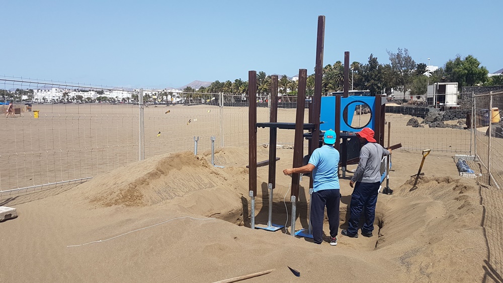 La Concejalía de Playas, bajo la dirección de Nerea Santana, y el concejal de Parques y Jardines, con la supervisión del concejal Francisco Javier Aparicio, están ejecutando de manera coordinada los nuevos equipamientos infantiles en la Playa de Los Pocillos, que entrarán en servicio durante este próximo mes de agosto. La zona seleccionada para este primer parque infantil playero existente en Lanzarote tiene en sus proximidades aseos, zona de estacionamiento para vehículos y un amplio paseo marítimo y zonas de terrazas donde las familias pueden disfrutar de su tiempo de ocio y esparcimiento mientras los chinijos y chinijas juegan en estas atracciones destinadas especialmente para ellos, diferencias por edades.