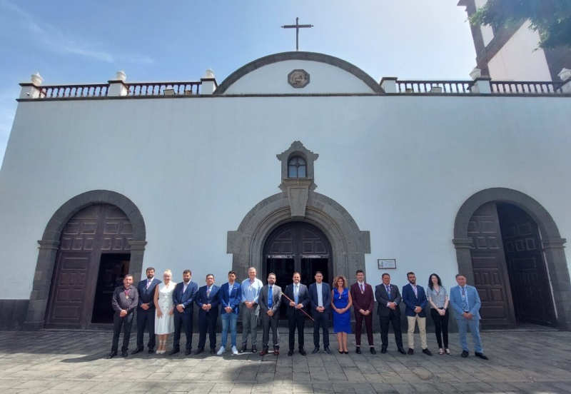 El alcalde de Arrecife, Yonathan de León, los portavoces de los grupos políticos PP, CC y PSOE, presentes en el acto, junto a los ediles de la Corporación Municipal han asistido a la visita institucional. Los ediles han acudido portando la medalla de concejal, donde fueron recibidos con un sonado repique de campanas, cuyo campanario fue hasta finales de los años 60 del pasado siglo XX la construcción más elevada en Arrecife.
