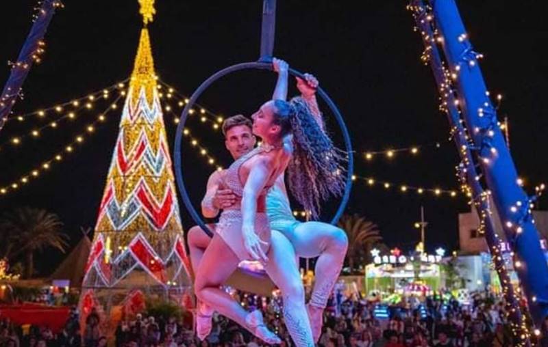 Anoche, el numeroso público asistentes pudo presenciar un espectáculo de acrobacia sobre el gran escenario instalado por el Ayuntamiento dentro de la Feria de la Navidad, junto al Charco de San Ginés.