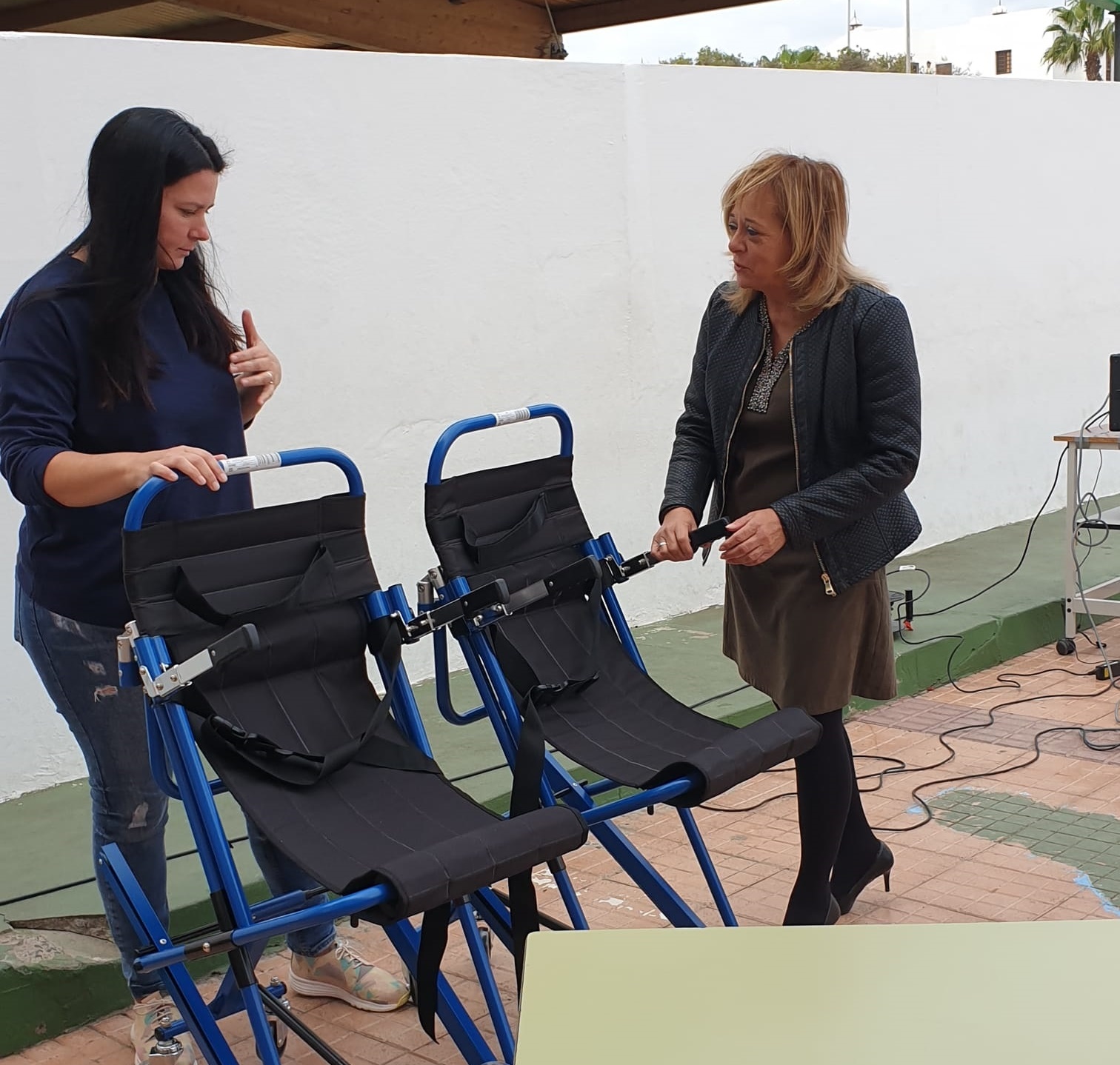 El colegio CEIP Capellanía del Yágabo, en Arrecife, cuenta desde este martes con dos sillas adaptadas que permiten la rápida evacuación de escolares con discapacidad.