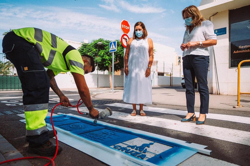 El Ayuntamiento de Arrecife está culminado en estas semanas la adaptación de varios pasos de peatones en los accesos a los colegios públicos de la capital de Lanzarote para orientar a los niños y adultos autistas.