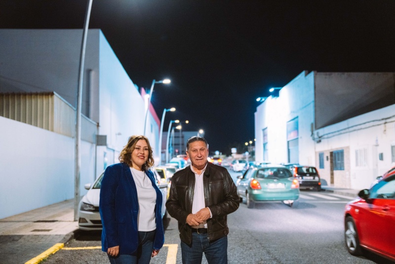 La alcaldesa de Arrecife, Astrid Pérez, y el concejal de Obras Públicas, Roberto Herbón, han inaugurado hoy el alumbrado público de la calle Bilbao, en el parque empresarial de Tenorio, dotando a esta zona de luz.