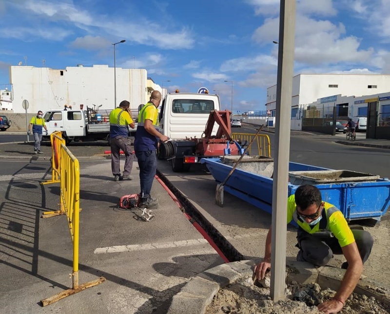 El concejal de Obras Públicas de Arrecife, Roberto Herbón, se desplazó a esta zona este sábado por la mañana, para verificar el trabajo, dentro de los planes que tiene su Área para ir canalizando nuevas acometidas para la canalización de la red de agua para riego.