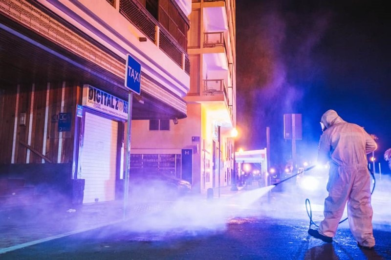 El Ayuntamiento de Arrecife sigue intensificando la desinfección en zonas sensibles de todo el municipio de la capital de4 Lanzarote para frenar la covid 19.