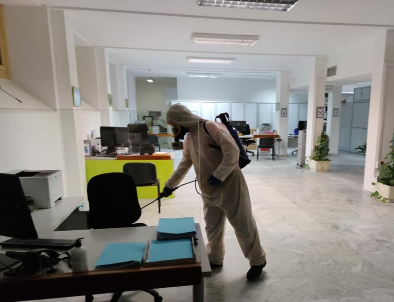 La Concejalía de Seguridad y Emergencias del Ayuntamiento capitalino, bajo la dirección del concejal popular Eduardo Placeres Reyes, ha desplegado desde el mismo día de la declaración de alerta fase 3 en Lanzarote (el viernes de la pasada semana), a todos los efectivos de Protección Civil para redoblar la desinfección y frenar la covid. La actuación de Arrecife se ha centrado en zonas de terrazas, paradas del taxis y guaguas, el entorno de los centros educativos, exteriores de centros comerciales, calles y paseos de alto tránsito, y edificios municipales, entre ellos la Casa de la Juventud y la sede de la Casa Consistorial de Arrecife.